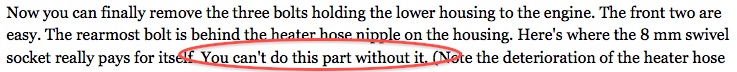 With my unprepared preparedness somehow because of Sears being the only carrier of an 8mm swivel socket with a 1/4″ drive on a hot Saturday afternoon in late June and we were able to catch this early enough before the bolt was stripped to nothing my vehicle miraculously made the journey through Reno, the Great Salt Lakes, and through the beautiful city of Denver.